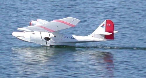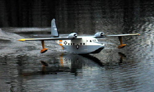 A large, graceful flying boat. Prototype used four GWS Speed 400 geared motors. Flies over 15 minutes on 3000mAh NiMH cells. Built 2004. |