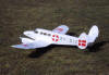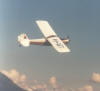 Smooth flying and good on floats. Great aileron trainer. Eppler 374 airfoil. Magnetic Mayhem 22 turn motor with 3.0:1 ratio gearbox driving 12x10 APC-E prop at 5,000 RPM draws 28 amps static. Very fast and aerobatic, especially with 3S LiPo battery. Also available at 62 in span, see below (2001). |