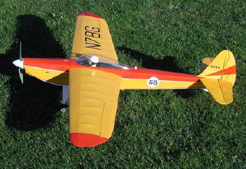 Prototype powered by a GWS EPS-300C-AS (Speed 370) with 3.75:1 reduction, 8x6 APC slow flyer prop. 8-cell 720 NiMH pack. 5,000 rpm static at 7.5 amps. Built in 2002. (photos of larger 60-in model, see listing below)